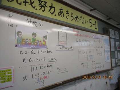 新しい単元に入りました。2Lのジュースを3等分すると…?わり算の商の表し方を考えました。