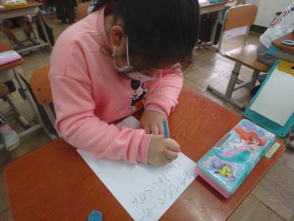 1年生とあゆみ学級のお友達に招待状を書きました。「丁寧な字で!」と,相手のことを考えて取り組む姿がすてきでした。