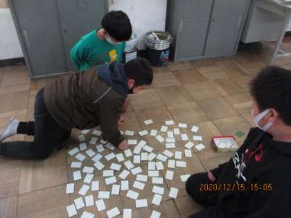 前回と比べて,取れる枚数が増えた人が多かったです。少しずつ覚えて,上の句で取れるよう頑張りましょう!