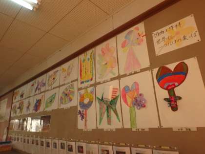 クラスの掲示を図画工作科で取り組んだ「せかいに一つだけのはっぱ」の絵にしました。全員の絵を見ていると,一人ひとりが丁寧に一生懸命取り組んだことが分かります。