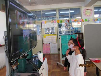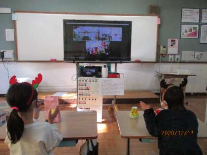 石田小学校くすのき学級・小栗栖宮山小学校そよかぜ学級と合同でクリスマス会を開きました。コロナウイルス感染拡大防止のため,Zoomを使ったオンラインでの交流会でしたが,お互いの顔を見ながら,出し物を見合ったり手を振り合ったりして楽しいひとときとなりました。
