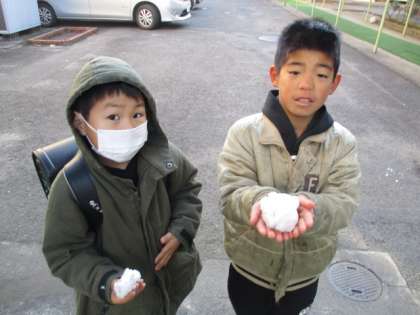 朝登校した子ども達は真っ先に雪を見つけてさわって遊んでいました。