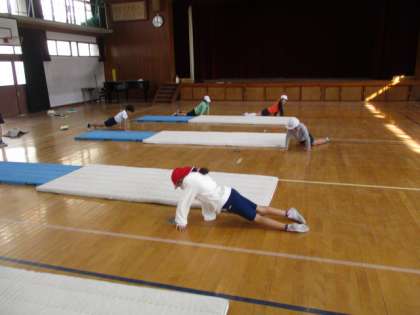 体ならしもしっかり短い時間でおこない,意欲的にマットに取り組んでいました。