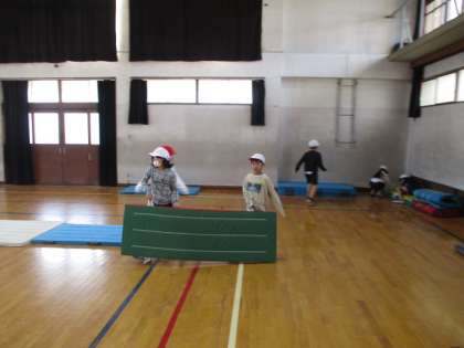 自分の場づくりが終わると他の班のマットを自然と運べている姿もとてもいいです。
