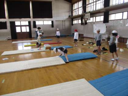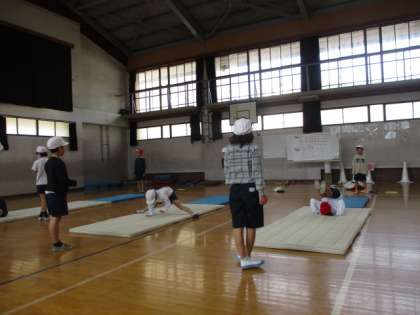 ねらい1では自分の技が終わると友達の技を見て,いい所とアドバイスを伝え合うようにしています。