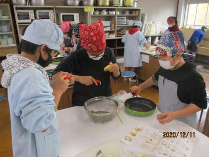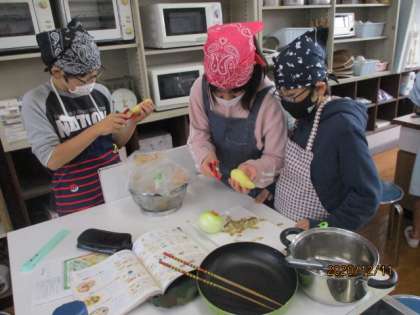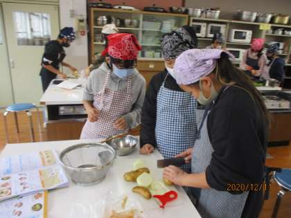調理実習でジャーマンポテトを作りました。班で協力してスムーズに進めることがでいました。