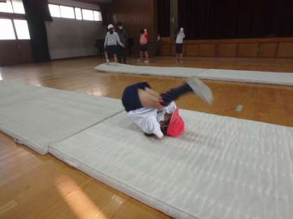 「マットあそび」の学習が終わりました。この学習を始める前と比べ,できる技が増えた人がほとんどでした!苦手意識をもっていた人も,「できるようになる!」と前向きな気持ちをもって学習に取り組む姿がすてきでした!