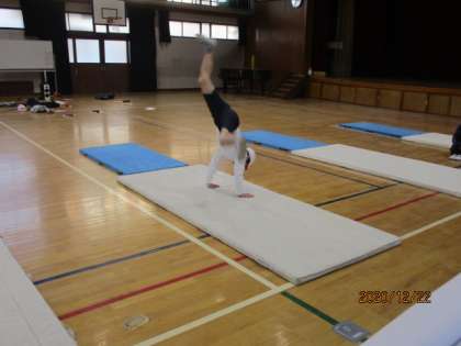 マット運動の発表会をしました。今まで練習してきた技を一人ずつ発表しました。