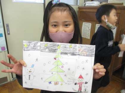 クリスマスカードが完成したら,子ども達は「メリークリスマス!!」と声をそろえながら,カードを開けていました。とても楽しそうで,微笑ましくなりました。