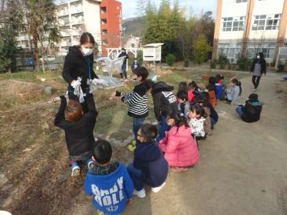 キャベツの種を植えました!キャベツは来年,理科の学習で活用します。久しぶりの畑での活動とあって,子どもたちはやる気まんまんでした!まずは力いっぱい雑草を抜いています…。