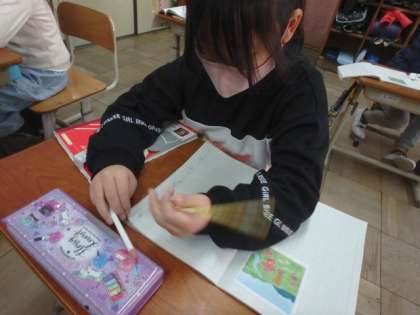 授業の最後には,実際に物語を書いていく絵を見ながら,想像したことを自由に書きました。