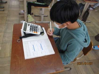 昨日の新型コロナウィルスの感染者数を例に問題を解き,人口に対して,どれだけ感染者が出ているのかを調べました。同じ数でも割合を求めたら,普段のニュースの見方も変わってくるという意見も出て,算数と実生活が結びついたようでした。