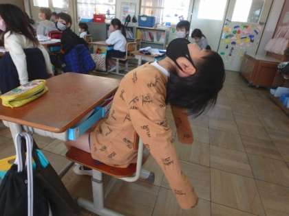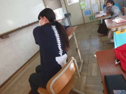 身体計測をしました。片山先生に正しい姿勢についてもお話をしていただきました。教えていただいたストレッチを楽しんで行っている姿がかわいかったです!