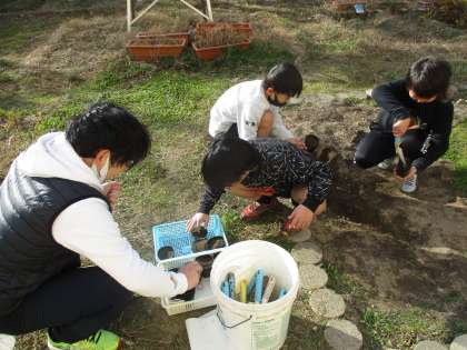 園芸係は,キャベツと人参の種をまき,誕生日係は誕生日カードの準備をおこない,かざり係は季節の飾りを本を見ながら作っていました。