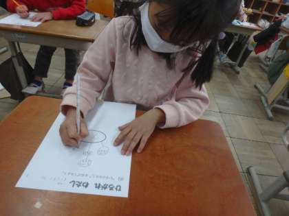 「今の自分」について考えました。「すきなもの」や「がんばっていること」など,黙々とプリントを書き進める子どもたちでした。