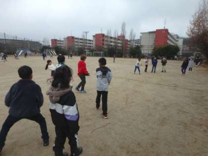 この日はドッヂボールをしました。寒さにも負けず,楽しく遊んでいます!