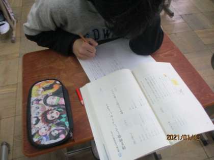 教科書に載っている3つの詩の中から1つ選んで視写し,朗読をしました。詩から感じることは様々でおもしろかったです。