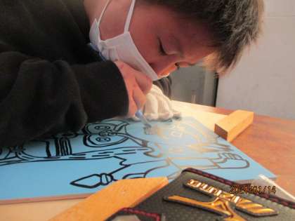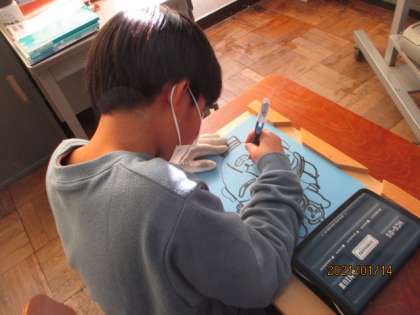 今日から彫刻刀を使い,彫り進めています。安全に気を付けながら,集中して取り組んでいます!