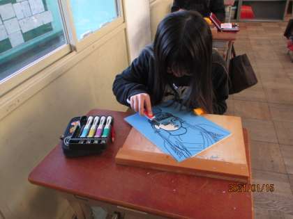 いろいろな彫刻刀を使い分けて,器用に彫り進めています。