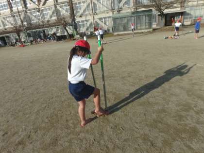 部活動の時間に竹馬に挑戦しました!一生懸命な表情で,何度も挑戦しいていました。「もっとやりたい!」「先生!来週の昼休み一緒にやろう!」と話していた子どもたち。来週から竹馬の特訓ですね!先生も楽しみにしています!