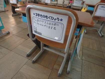 3学期の目標を椅子の後ろに貼りました。毎日意識できるようにしたいですね。