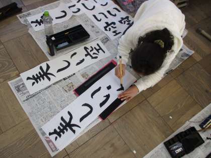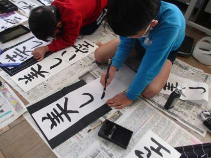 最初は字の大きさやバランスに苦戦していた子ども達ですが,だんだん感覚もつかみ,満足のいく作品をつくり上げることが出来ていました。
