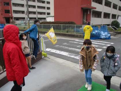 4年生の学級代表の子も参加し,朝に正門と府営門に立ってあいさつをしています。