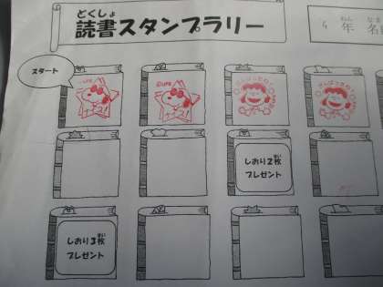 図書委員から,読書スタンプラリーを達成した人にしおりのプレゼントがありました。