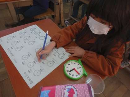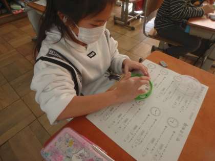1学期に学習した「時間と時こく」の復習をしました。実際に操作できる時を動かしながら問題にチャレンジしました。「○分後の時刻」や「○時から△時までの時間」をしっかり求めることができるようになってきました。