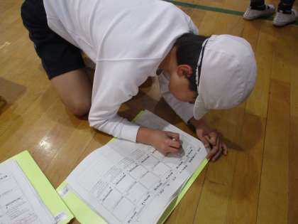 間のふり返りの時間には,出来るようになった技も披露して,みんなで高め合っています。