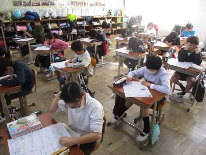 今日で長く続いた単元「小数のかけ算とわり算」のテストが終わりました。