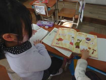 自分たちが友達に知らせたい遊びについて調べています。本に書かれていることの中から必要なことを見つけることが難しかったです。