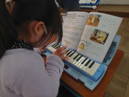 鍵盤ハーモニカの運指の練習に取り組んでいます。スムーズに指が動かせるようになってきました!