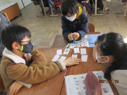 カードマッチングを通して行事で行った場所やしたことなどを伝える練習をしました。