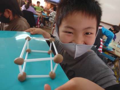 今回のはこの形では,同じ長さのストローが4本ずつ必要だということに気付くことができた子どもたち!同じ長さを意識しながらしっかりと組み立てることができていました。