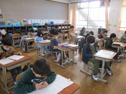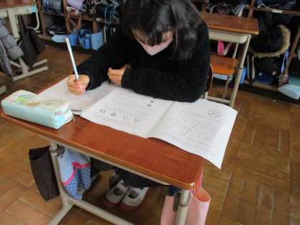 いつものテストと比べると, 文章の量に圧倒された子が多かったです。