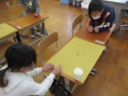 算数の時間に,おはじきゲームをして,点数を比べました。点数を比べるときは,まず十のくらいから見ることが分かりました。