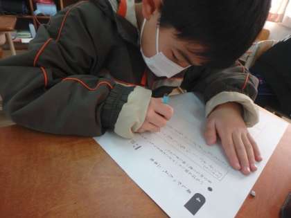 国語科の学習で2年生での思い出をふり返りました。持久走大会や休み時間の遊びを思い出として書いている子が多かったです。