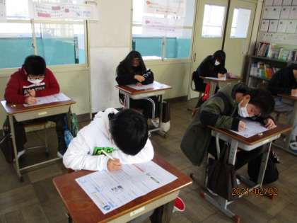 国語科のテストをしました。問題文をしっかり読んで,集中して取り組んでいます。