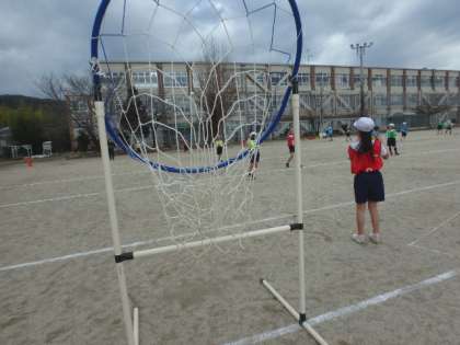 試合の時間,山なりのパスやシュートが上手になってきました。この日のふり返りの時間には,「横に動くとパスをもらいやすい!」という意見が出ました。次の試合に活かしていきたいですね!