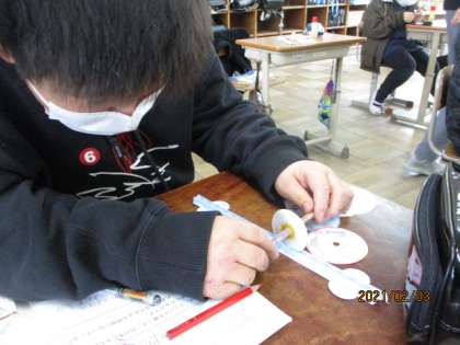 今日の算数科では円周と直径の関係について調べました。円周測定マシーンを使って,直径4cm,5cm,6cm,7cm,8cmの円の円周を調べました。