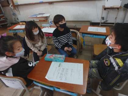 その後,自分の思い出を話す中で,どこにつなぎことばを使えるのかを考えました。少し友達と交流してみると,話す内容を整理しやすかったです。
