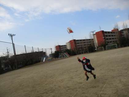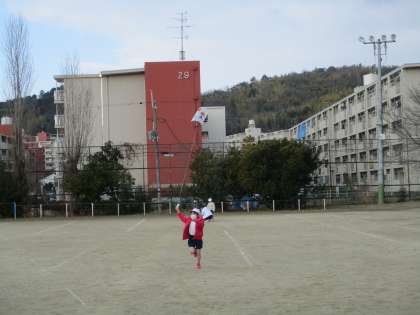 みんな夢中になって走りまわり,凧をあげていました。寒かったですが,たくさん動いて,ポカポカになった様子でした。