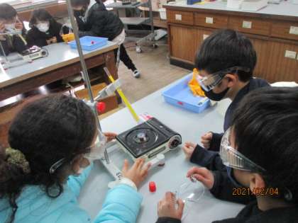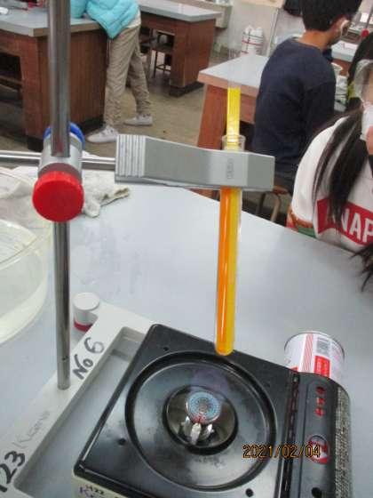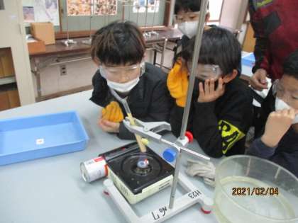 金属は熱した所から順に温まっていくので,水もそうだろうと予想している子が多かったのですが,実験をしてみてビックリ!