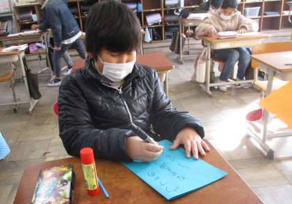 今日の時間には,書き上げた紹介文は画用紙にはり,表紙を書いて完成させました。