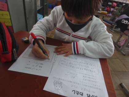 「〜だったそうです。」「〜でした。」という言葉づかいにも気を付けて書きました。名前の由来では,お家の方の子どもたちに対する大きな愛情を感じました!お忙しい中,インタビューにご協力いただき,ありがとうございました。