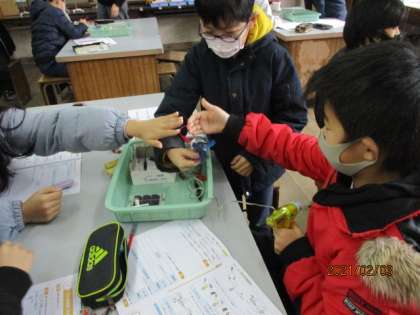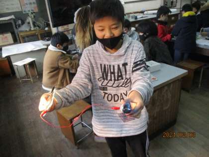 つくったりためたりした電気は,乾電池と同じ働きをするのかについて調べました。
