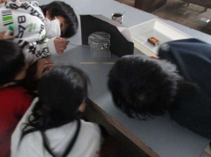 水と比べて動きを目で見るのがより難しく,線香のけむりを使って調べていきました。