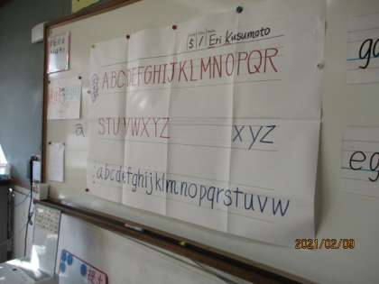 今日は自分の名前や家族,友達の名前を書く練習をしました。4線を使って,大文字小文字を使い分けながら,一生懸命に書くことができました。