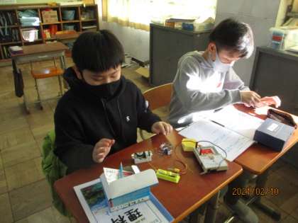 電磁石の強さを調べる実験。今日はコイルの巻き数を変えて実験しました。